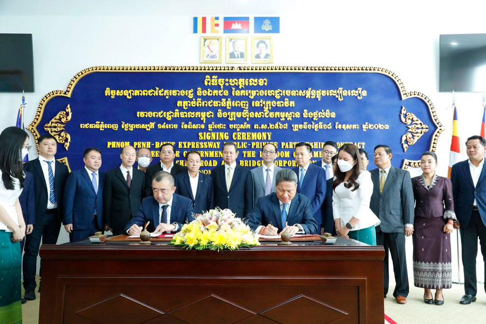 The signing ceremony was held on May 18, under the chairmanship of public works and transport minister Sun Chanthol and Zhou Yong, representative of China Road and Bridge Corporation (CRBC).