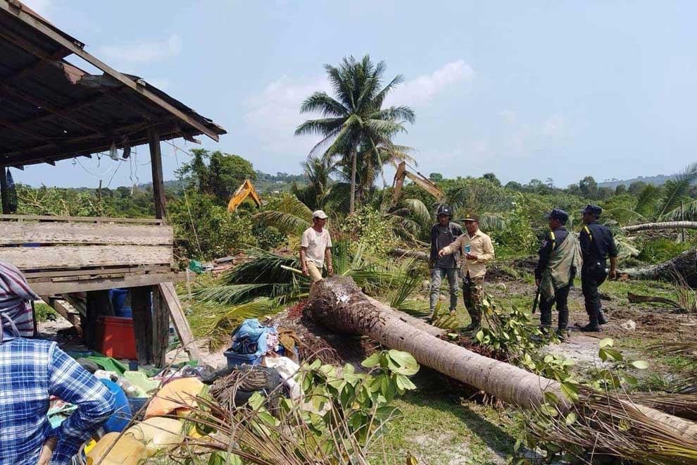 Villager Peurng Loun, 45, said two UDG excavators destroyed hundreds of coconuts, mangoes and cashews on her 2.5 hectares of land in Koh Sdach commune in Kiri Sakor district on April 3. Villagers in neighbouring Prek Khsach commune have joined the petition, fearing similar losses.